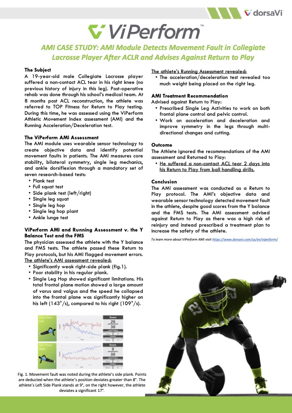 The AMI v. Competitors At dorsaVi, we make wearable sensors. Our AMI module relies on easy to use wearable sensor technology: a clinician simply places these sensors on an athlete and conducts a series of seven tests to assess and record their movement. For our AMI module, wearable sensors are first placed on the low back in order to measure the movement of the lumbar spine. Whilst the sensors are on the low back, the athlete will complete: One minute plank 20 full squats One minute side plank (right and left) The clinician will the switch the sensors from the low back to the tibia and continue the assessment with single limb testing: Single leg squat Single leg hop Single leg hop plant (hop forward, hop back, hop lateral, hop medial) Ankle dorsiflexion But, why do we rely on wearable technology when there is a vast range of other technologies out there? And how does wearable technology compare with this? Dr Trent ...